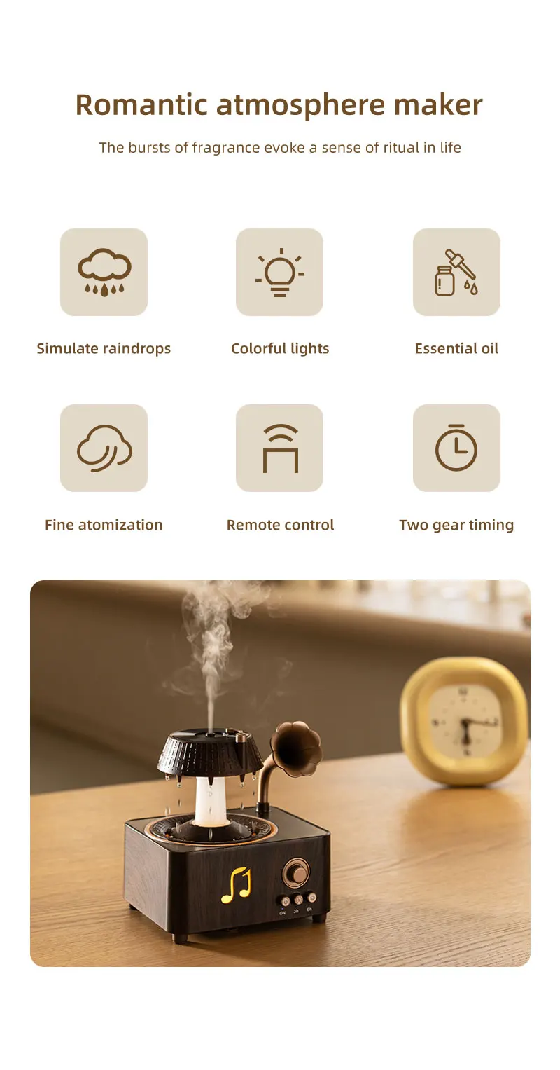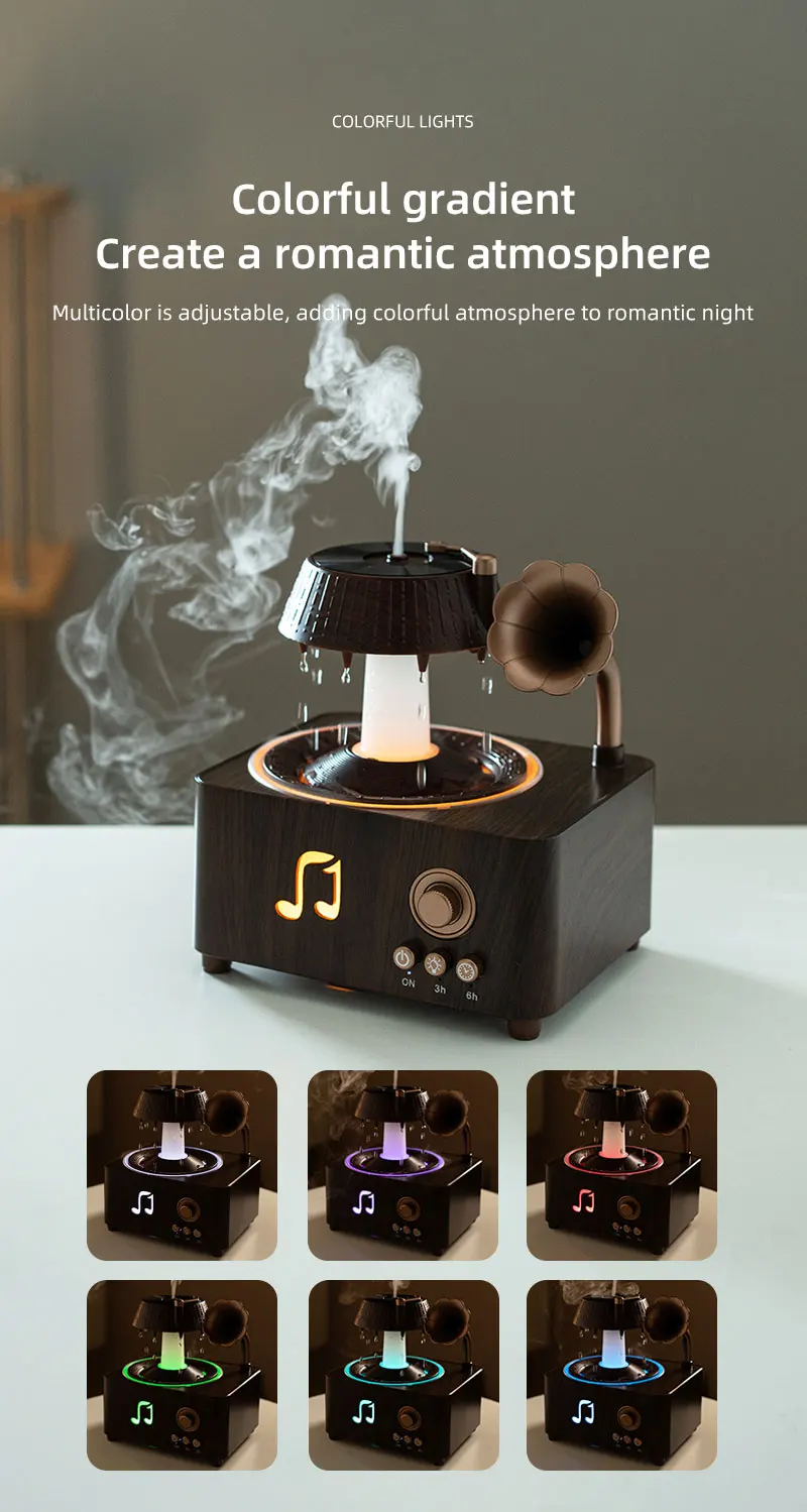 250ml Rotating Raindrop Air Humidifier Music Box Phonograph Gramophone Aromatherapy Humidifier Essential Oil Fragrance Diffuser