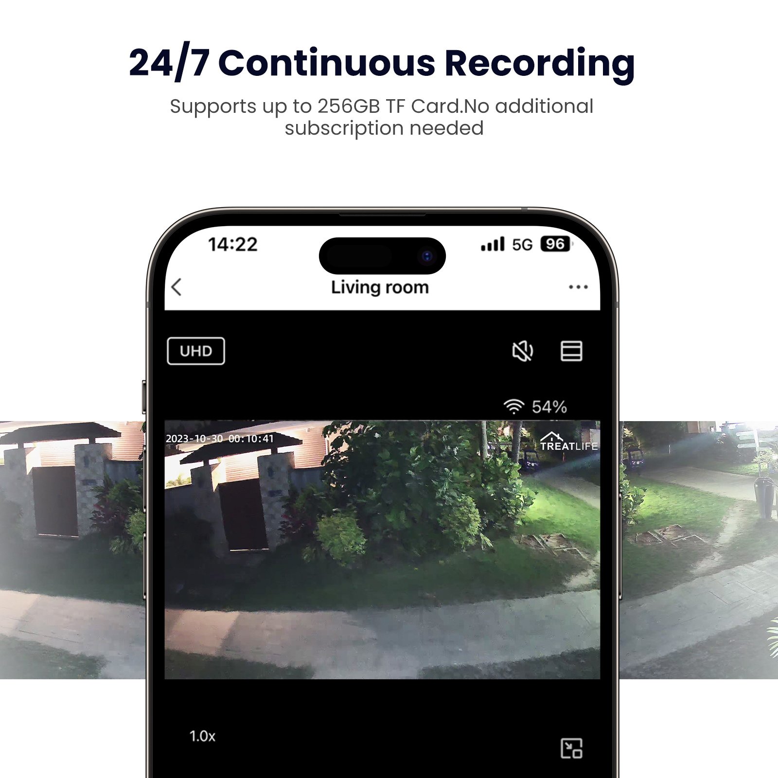 Protect your home with the Outdoor WiFi Security Camera , delivering crystal-clear Ultra HD video with HDR for sharp detail in any lighting. Monitor every corner with 355° pan, 100° tilt, and 5× digital zoom , while AI motion detection accurately distinguishes people, pets, and vehicles to reduce false alerts. Stay connected with dual-band WiFi , real-time access via the TREATLIFE app or web browser, and secure storage on microSD (up to 256GB) or cloud. Built to endure all weather with an IP65 weatherproof rating , it also features color night vision , ultra-bright spotlights , two-way audio , and customizable alarms , making it a perfect smart home security camera compatible with Alexa and Google Home .