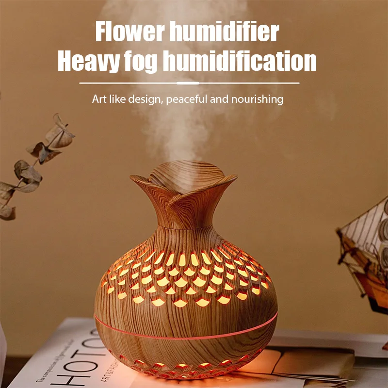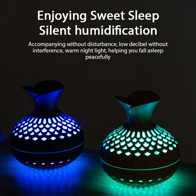 Wood Grain Mini Vase Air Humidifier USB Electric Ultrasonic Water Aroma Essential Oil Diffuser Home Room Fragrance Air Purifier